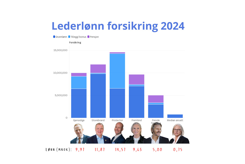 Bankene er ikke alene om å ha sterkere vekst i lederlønna enn i de ansattes lønninger. Vi ser et lignende bilde i forsikringsbransjen, der Protector-sjefen hadde et lønnshopp på snaut 30 prosent.