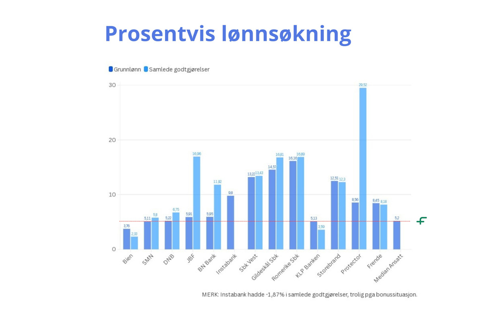 Bankene er ikke alene om å ha sterkere vekst i lederlønna enn i de ansattes lønninger. Vi ser et lignende bilde i forsikringsbransjen, der Protector-sjefen hadde et lønnshopp på snaut 30 prosent.