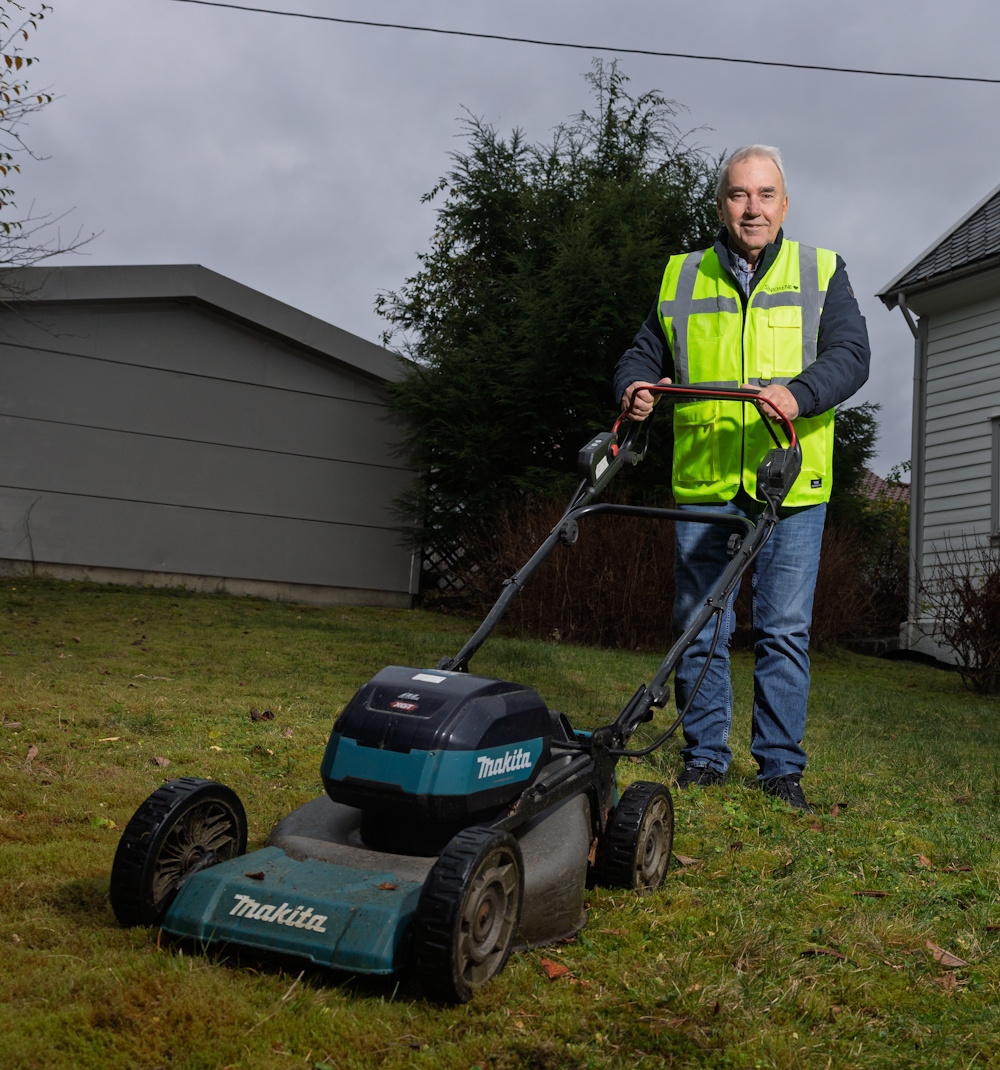 – Du ser at plenen er klippet og huset malt. Etter et langt liv med kontorarbeid er det godt å være ute og bruke kroppen.