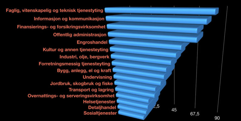 Norsk finansnæring er én av bransjene der fleksibel arbeidstid er mest utbredt, ifølge en rapport Fafo har laget. Jo mer komplekse arbeidsoppgaver du har, desto større er sjansene for at du får muligheten til å tilpasse arbeidstid og arbeidssted.