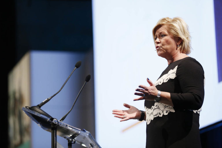 – Jeg er imponert over innovasjonskraften i norsk finansnæring. Derfor må dere fortsette å investere i kunnskap og teknologi og være på hugget i kampen om kompetent arbeidskraft!